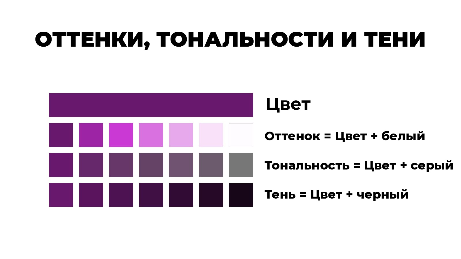 Оттенок - это чистый цвет. По сути, это любой из цветов на цветовом круге.